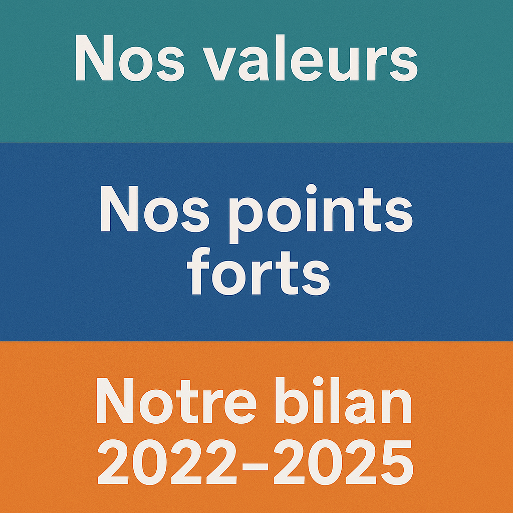Nos valeurs, nos points forts, notre bilan 2022-2025